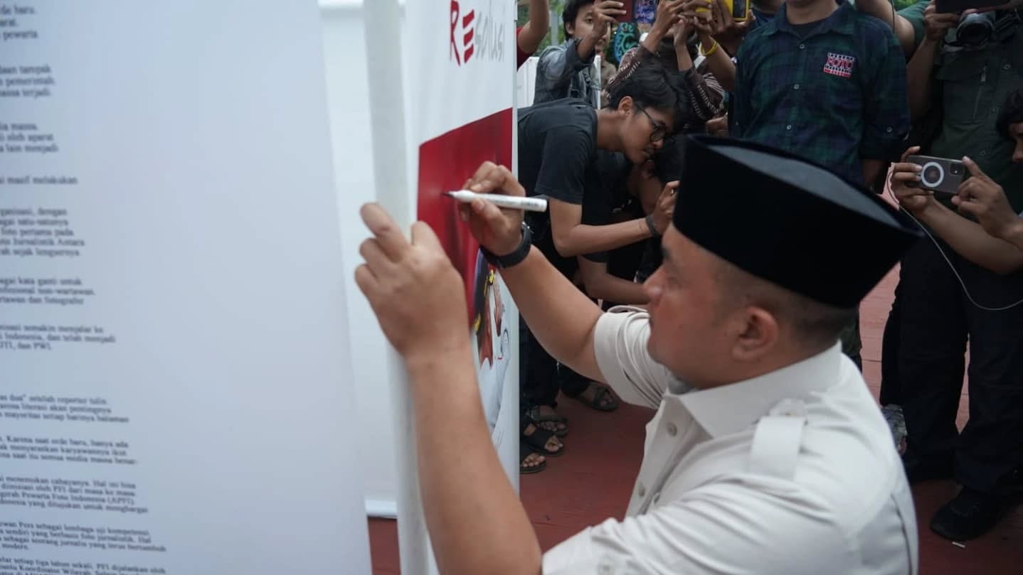 “Pameran ini juga menjadi bentuk apresiasi terhadap peran pewarta foto dalam menyampaikan informasi visual yang kuat kepada publik. Mungkin tidak semua bisa tertangkap kamera, namun 64 foto ini adalah bagian dari cerita besar yang sedang kita bangun bersama,” tambah Hendi.