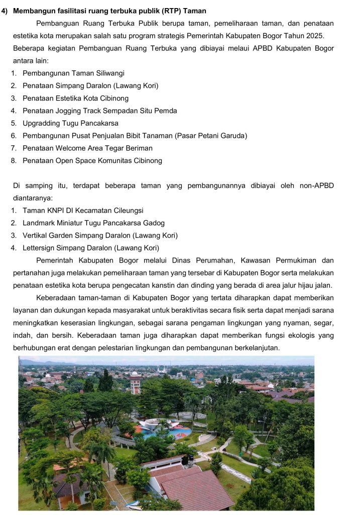 - Pembangunan Dan Pengembangan Perumahan dan Kawasan Permukiman Tematik Kabupaten Bogor Tahun 2025 – 2045;