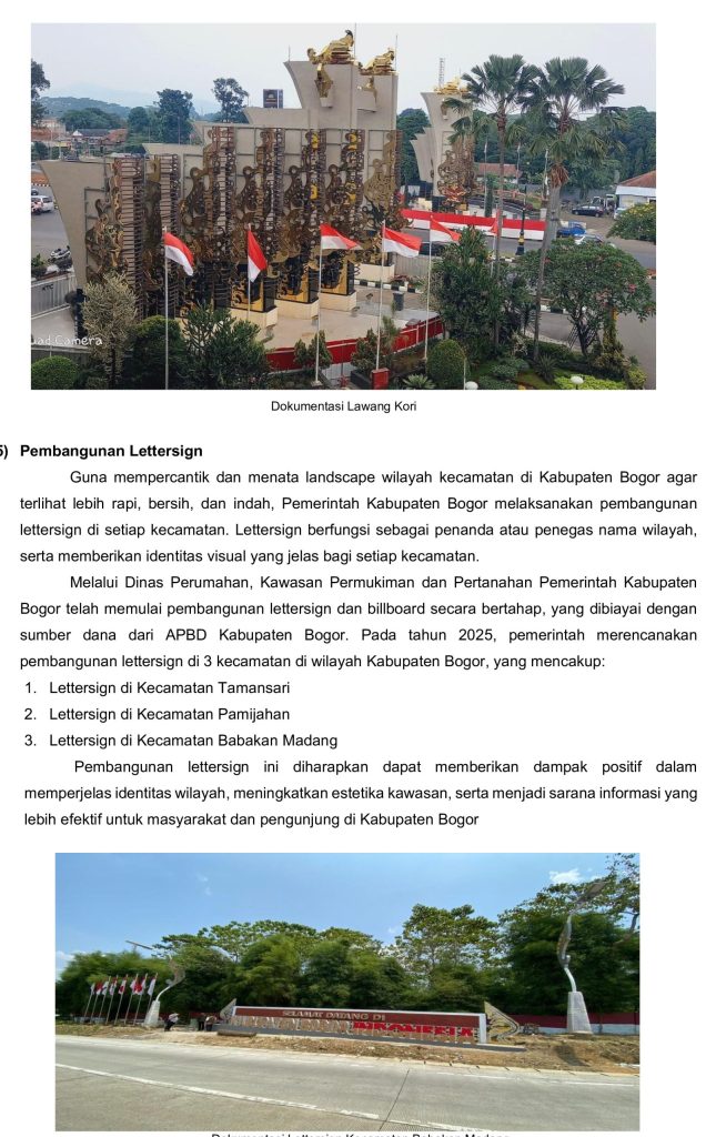 - Pembangunan Dan Pengembangan Perumahan Dan Kawasan Permukiman Kabupaten Bogor Tahun 2025 – 2045;