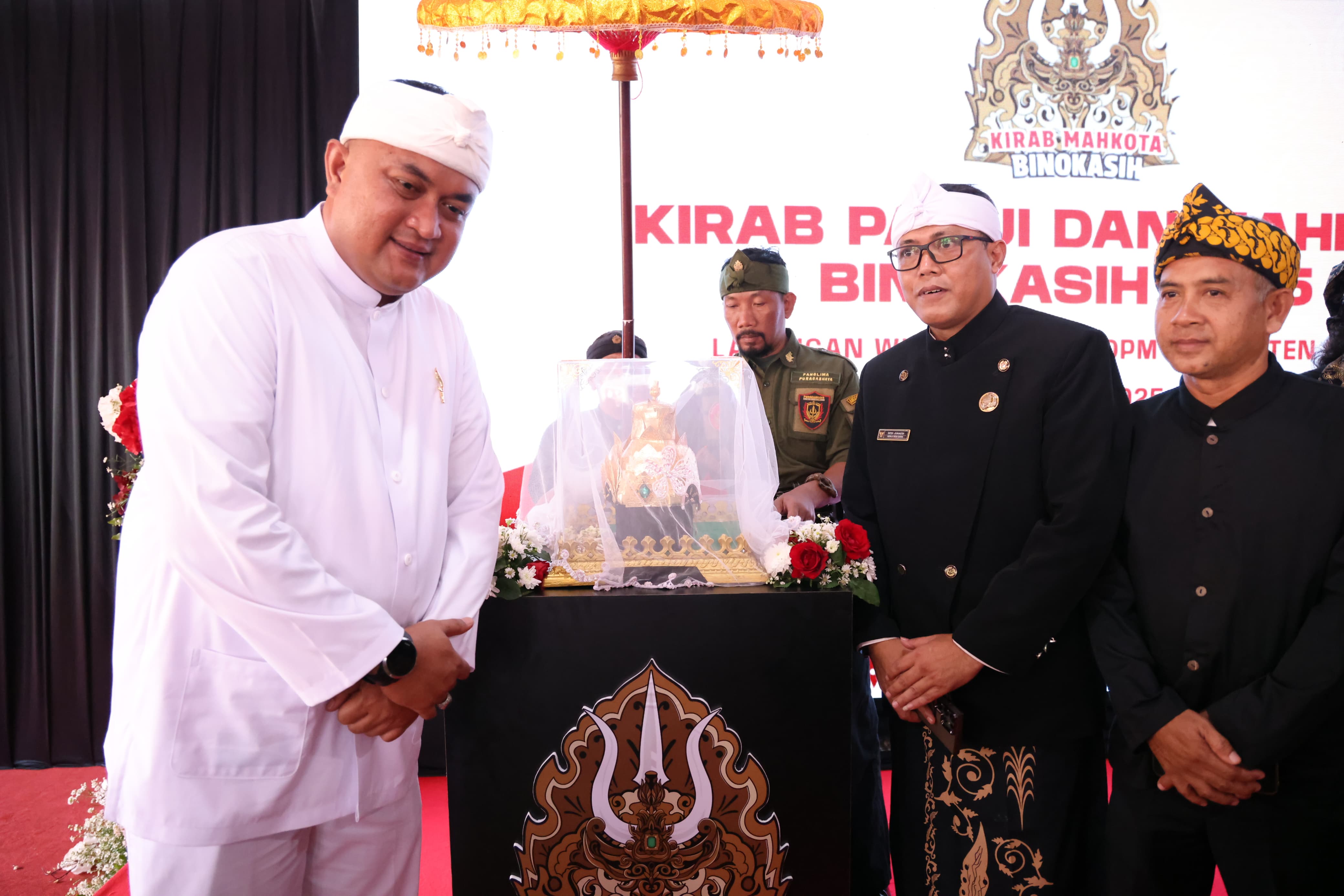 Kirab Panji dan Mahkota Binokasih dilaksanakan dari SMK Negeri 1 Cibinong menuju Auditorium Sekretariat Daerah, Cibinong, Senin (21/4). Hadir Radya Anom Keraton Sumedang Larang, Raden Luky Djohari Soemawilaga beserta permaisuri. Salatin Asyrof Azzahro Trah Kesultanan, Andi Syahriansyah Alwi A. Forum Dzurriyat Kesultanan Banten, Tubagus Irwan Kurniawan. Kesultanan Riau Lingga, Teungku Armizan Al Quds. Kerajaan Pajajaran, Raden Zubair. Kerajaan Samudera Pasai, Syarif Haji Teuku Badrudin Syah.